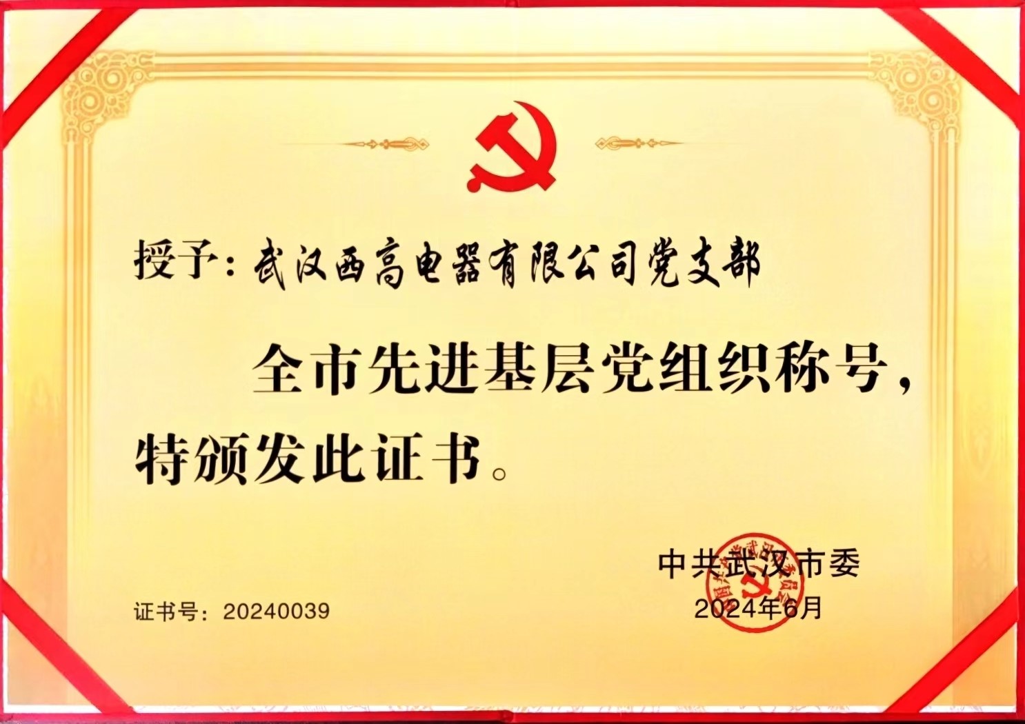 2024628日,武漢市“兩優(yōu)一先”表彰大會(huì)舉行,武漢西高電器有限公司黨支部榮獲武漢市“先進(jìn)基層黨組織。西高電器黨支部書(shū)記、董事長(zhǎng)周雄出席表彰大會(huì)。榮譽(yù)照亮前行之路,全體西高人將不忘初心,鼓足干勁,再創(chuàng)佳績(jī)!